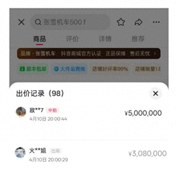 快科技4月12日消息,近日,张雪机车冠军复刻赛车被500万元成功拍走,竞拍中奖用户网名为“敌敌畏”。